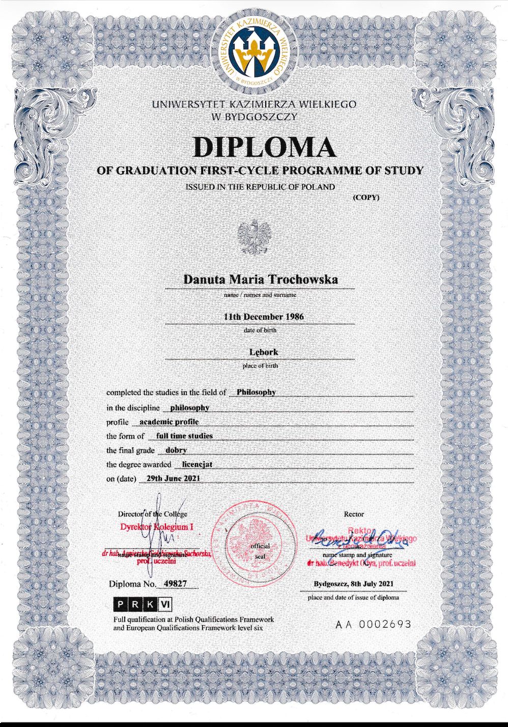 Ukończyłam również studia licencjackie z filozofii, co pomaga mi patrzeć na ludzkie doświadczenie z szerszej perspektywy, z uważnością i refleksją.