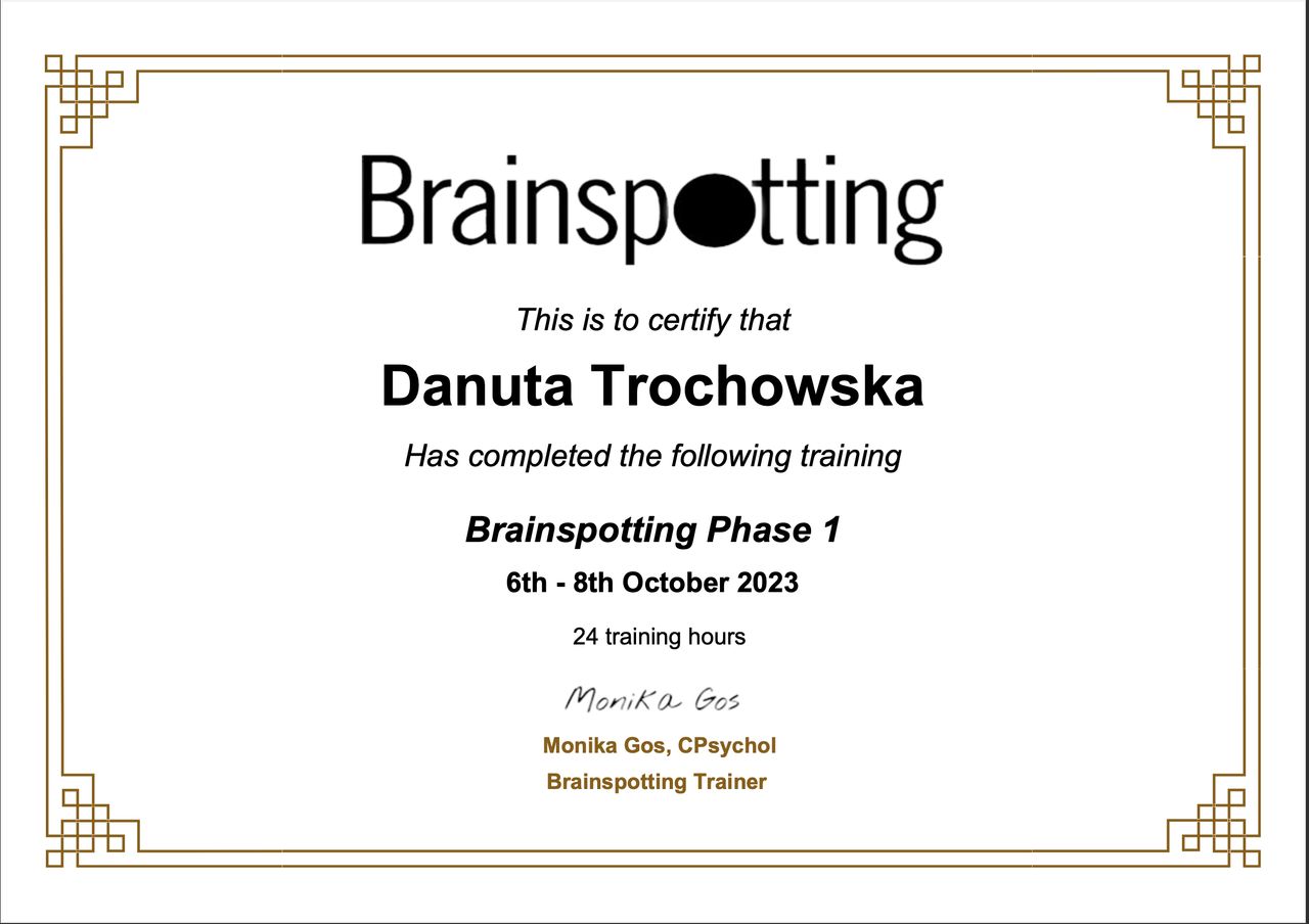 Specjalizuję się również w pracy z traumą – jestem terapeutą Brainspotting oraz psychotraumatologiem. Wspieram osoby po trudnych i obciążających doświadczeniach życiowych, w kryzysach emocjonalnych, po stratach, wypadkach, przemocy czy długotrwałym stresie.