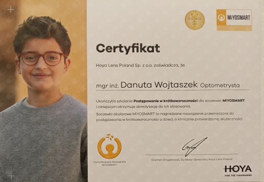Zajmuję się badaniem ostrości wzroku, doborem korekcji okularowej, doborem soczewek kontaktowych miękkich (sferycznych, torycznych, multifocalnych) oraz soczewek do kontroli krótkowzroczności- MiSight, Miyosmart.