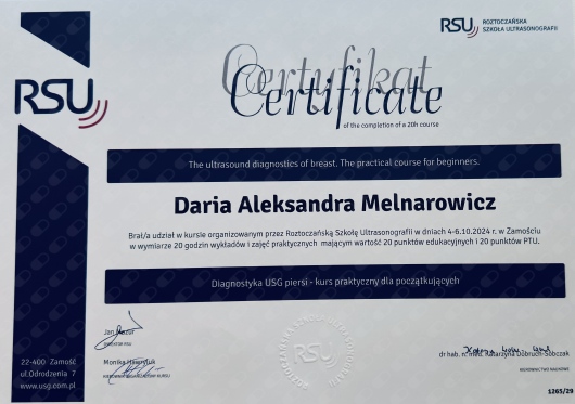Wizyta w gabinecie pozwoliła postawić prawidłową diagnozę dzięki pełnemu zaangażowaniu i wnikliwemu badaniu pani dr Darii Melnarowicz. Otrzymałem pełną informację i żadne zadanie, przeze mnie, pytanie nie zostało bez odpowiedzi. Kolejna wizyta za pół roku.
