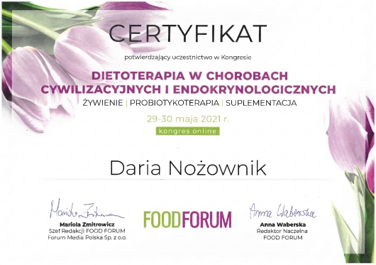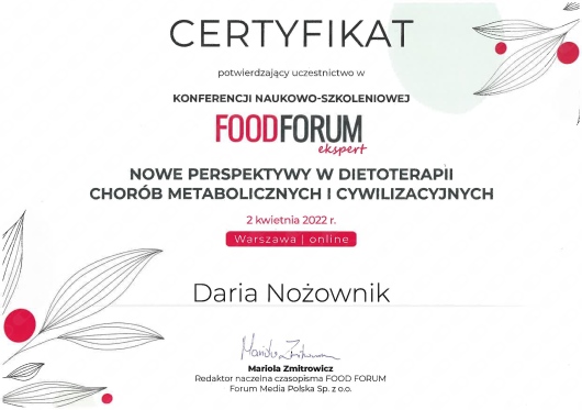Serdecznie dziękujemy za poświęcenie czasu na podzielenie się swoją opinią oraz za tak miłe słowa dotyczące pracy naszej dietetyk klinicznej, mgr Darii Nożownik.