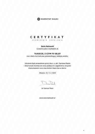 Jestem absolwentką Dietetyki Klinicznej oraz magistrem Psychodietetyki na Śląskim Uniwersytecie Medycznym. Moja nauka w zawodzie dietetyka nie zakończyła się na ukończeniu studiów. Pasja o zdrowym odżywianiu prowadzi mnie do kolejnych niesamowicie fascynujących kursów oraz szkoleń, a także do szczęścia moich podopiecznych. Dodatkowo lubię wyszukiwać najnowsze badania i ciekawostki żywieniowe, które przekazuję Wam w swojej pracy.