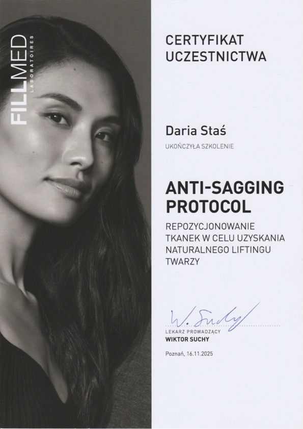 Jaki jest zakres porad oferowanych przez Daria Staś?Daria Staś to lekarz wykonujący zabiegi medycyny estetycznej. Na podstawie swojego doświadczenia i wykształcenia Daria Staś oferuje usługi takie jak: Konsultacja z zakresu medycyny estetycznej, Konsultacja z medycyny estetycznej, Usuwanie zmarszczek toksyną botulinową, toksyna botulinowa kurze łapki, Toksyna botulinowa- czoło, Toksyna botulinowa nadpotliwość dłonie, Toksyna botulinowa nadpotliwość pachy, Toksyna botulinowa nadpotliwość stopy, Lifting twarzy, Zabieg Profhilo.