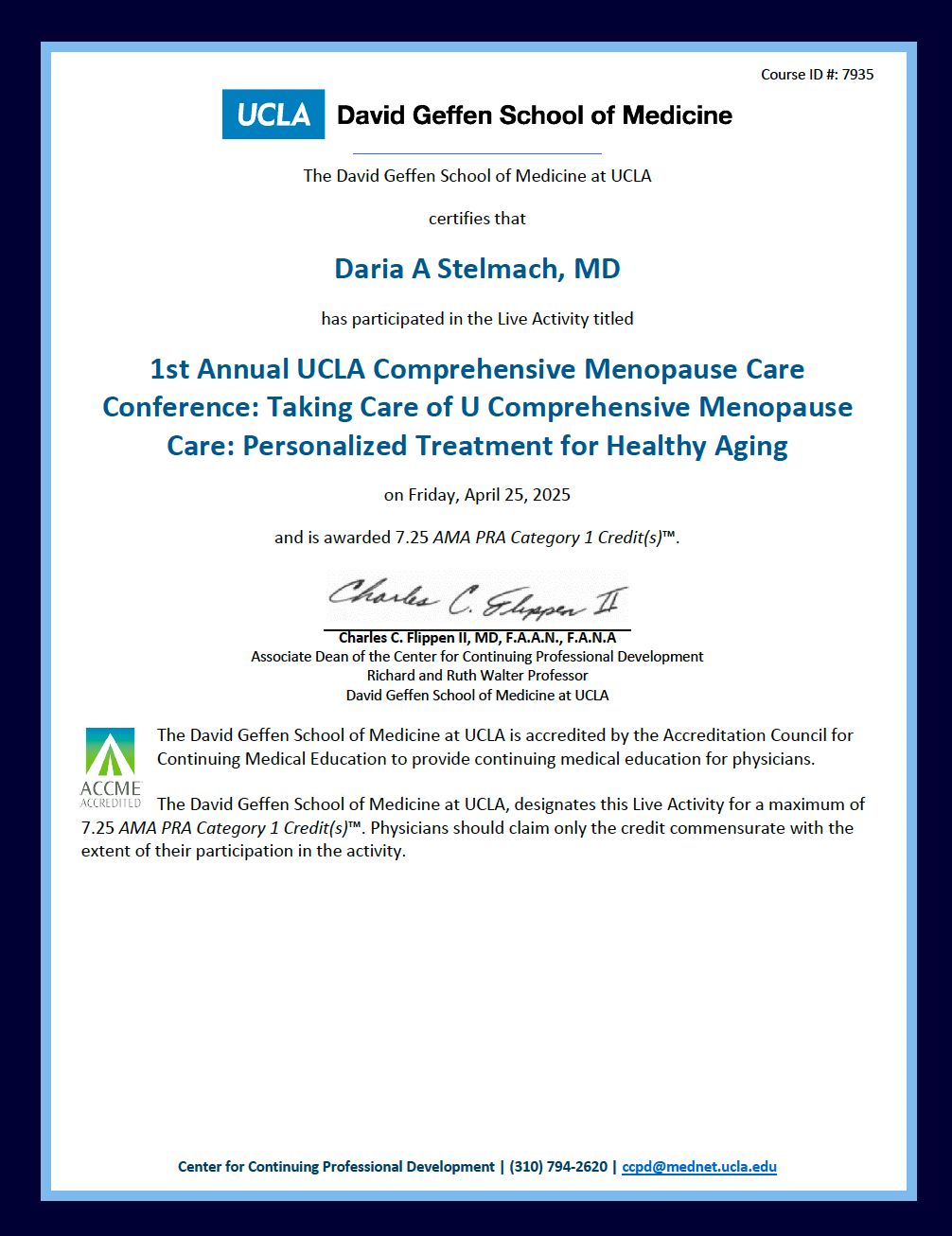 W latach 2024–2025 odbyłam staż naukowo-kliniczny w David Geffen School of Medicine w University of California Los Angeles (UCLA).