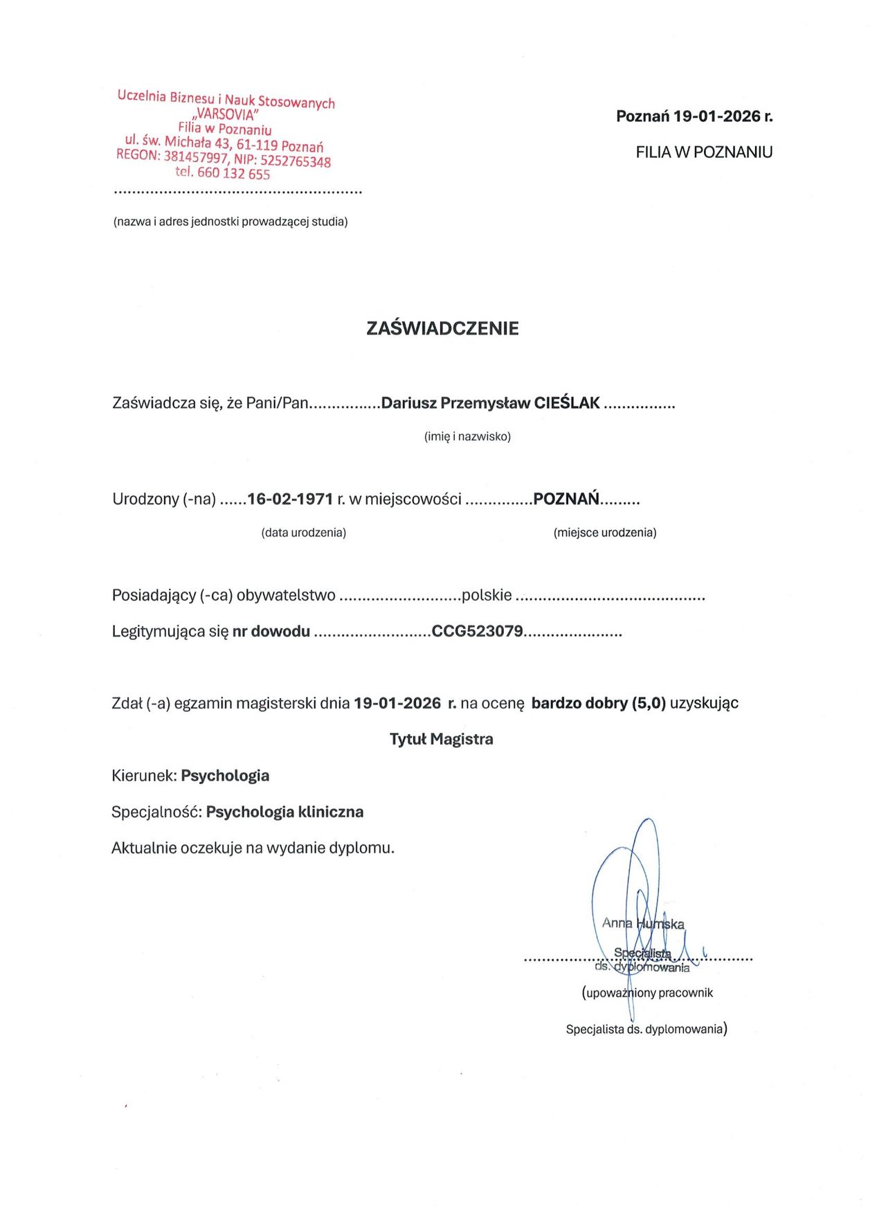 mgr Dariusz Cieślak