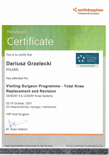 Uczestniczyłem w licznych konferencjach i kursach krajowych i zagranicznych (m.in. we Włoszech, Niemczech, Luksemburgu, Turcji, Stanach Zjednoczonych, Austrii) zarówno jako słuchacz, jak i wykładowca. Odbyłem również staże zagraniczne w Holandii (Sint Maartenskliniek, Nijmegen) oraz w Niemczech (Oberschwabenklinik, Krankenhaus St. Elisabeth, Ravensburg), koncentrujące się na zagadnieniach związanych z endoprotezoplastyką pierwotną i rewizyjną stawów biodrowych oraz kolanowych.