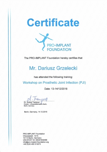 W 2020 roku uzyskałem tytuł doktora nauk medycznych z wyróżnieniem za pracę doktorską pt. „Ocena przydatności kalprotektyny w wykrywaniu i monitorowaniu leczenia infekcji okołoprotezowych stawów kolanowych”. Rozprawa ta zajęła I miejsce w konkursie na najlepszą pracę doktorską organizowanym przez Polskie Towarzystwo Ortopedyczne i Traumatologiczne.