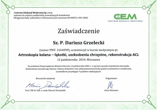 W 2023 roku uzyskałem tytuł doktora habilitowanego nauk medycznych oraz profesora uczelni, nadane przez Radę Naukową Centrum Medycznego Kształcenia Podyplomowego w Warszawie.
