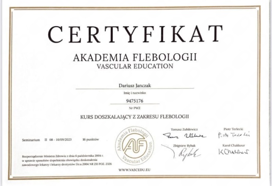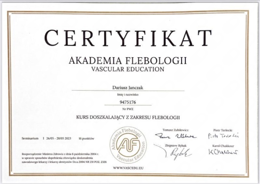 Jaki jest zakres porad oferowanych przez Dariusz Janczak?Dariusz Janczak to chirurg naczyniowy, chirurg, transplantolog. Na podstawie swojego doświadczenia i wykształcenia Dariusz Janczak oferuje usługi takie jak: Laserowe usuwanie żylaków (EVLT/EVLA), Zabieg wszycia Esperalu, Konsultacje flebologiczne z oceną układu żylnego, konsultacja chirurga naczyniowego - profesor, konsultacja chirurga ogólnego – profesor, Usunięcie leku Disulfiram, Skleroterapia zmian naczyniowych, miniflebektomia.
