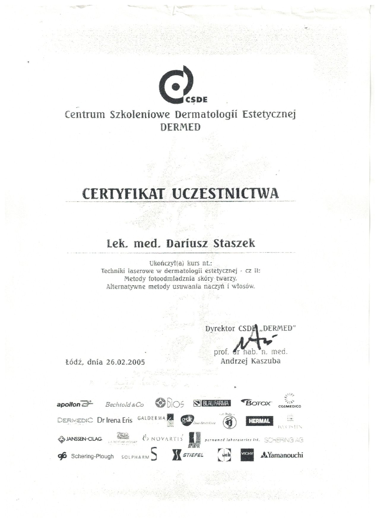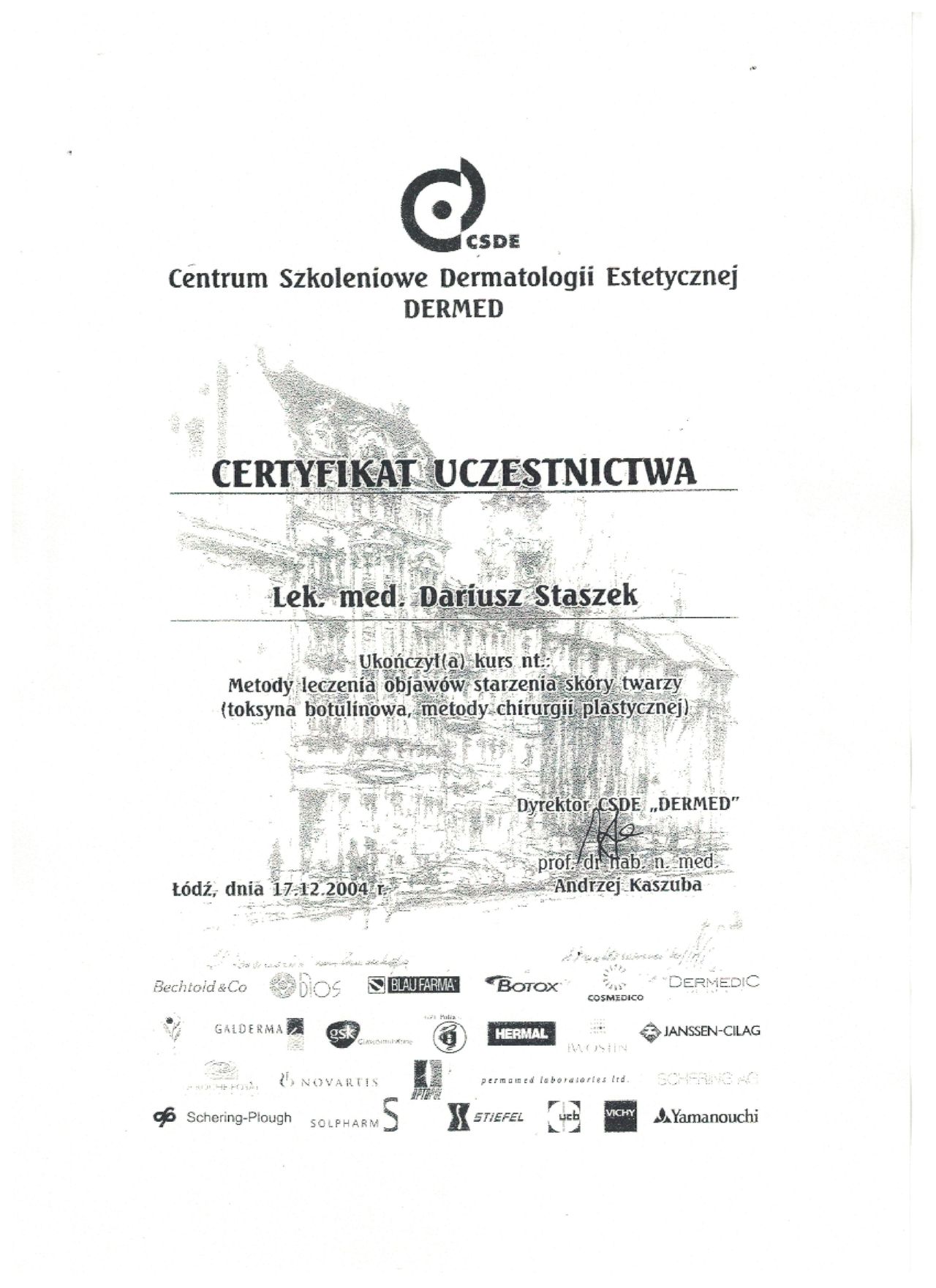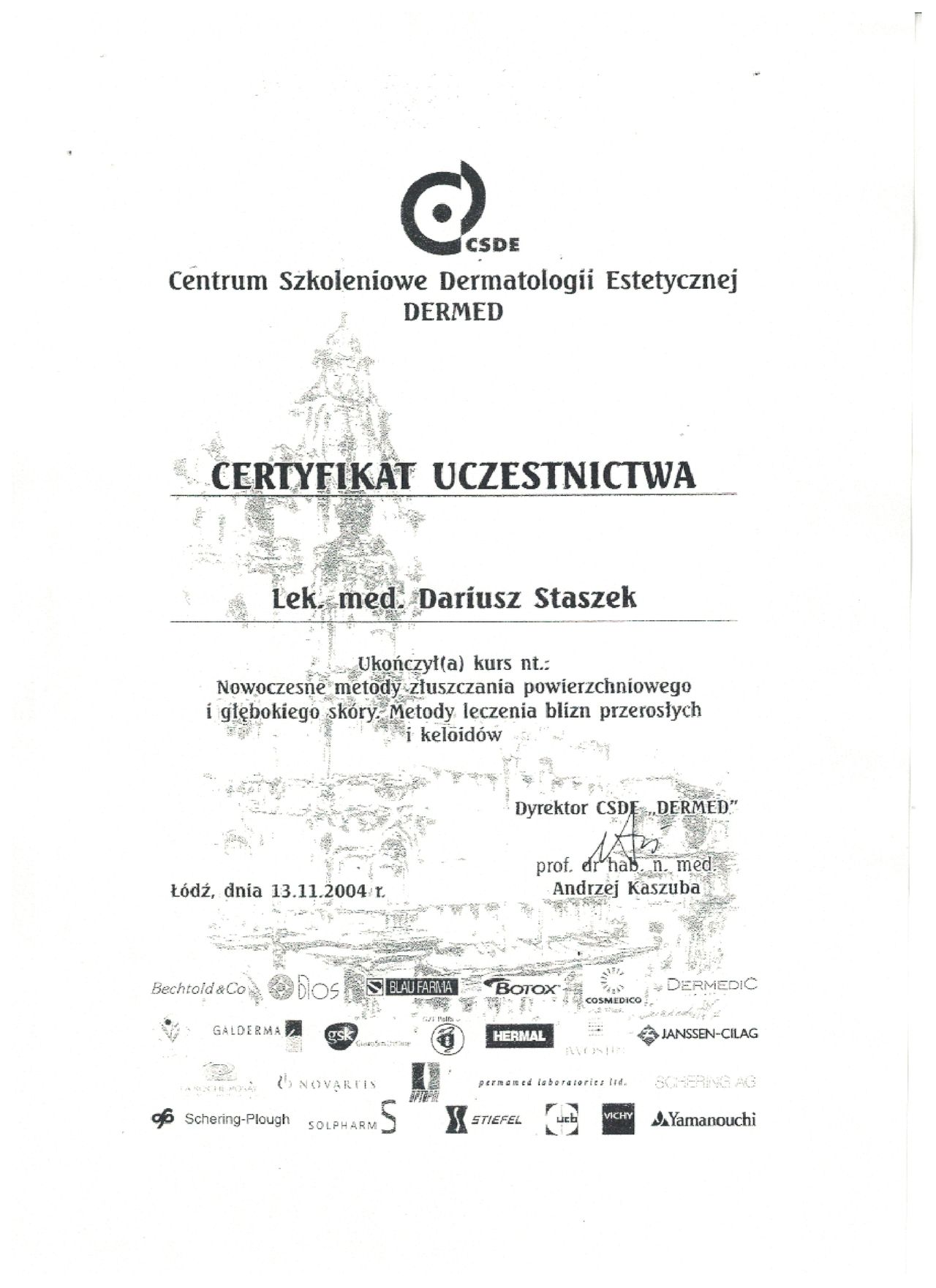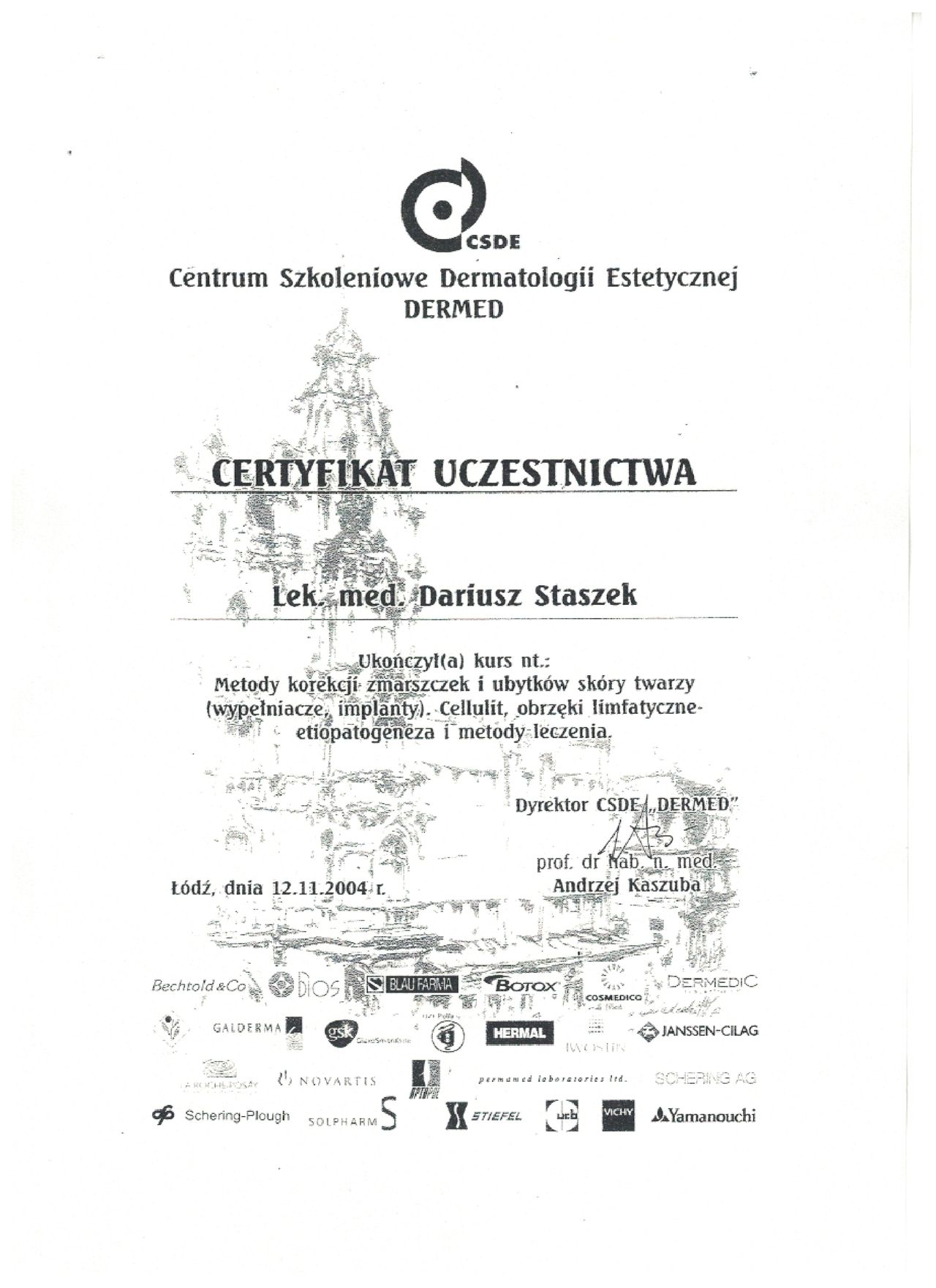 Jaki jest zakres porad oferowanych przez Dariusz Staszek?Dariusz Staszek to dermatolog, lekarz wykonujący zabiegi medycyny estetycznej. Na podstawie swojego doświadczenia i wykształcenia Dariusz Staszek oferuje usługi takie jak: Botoks, Łyżeczkowanie/Kriochirurgia (3 i więcej), konsultacja dermatologiczna, badanie skóry (dermatoskopia), Biopsja diagnostyczna zmiany skórnej/podskórnej, Konsultacja Trychologiczna, Laser frakcyjny CO2 dekolt, Laser frakcyjny CO2 okolica oczu, Laser frakcyjny CO2 policzki, Laser frakcyjny CO2 szyja.