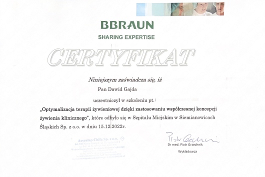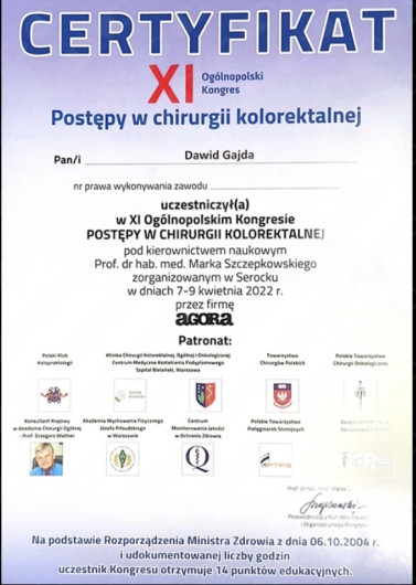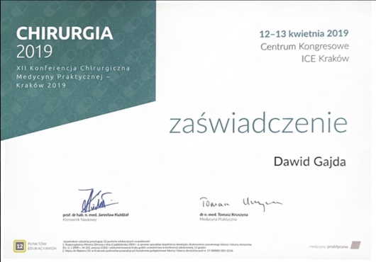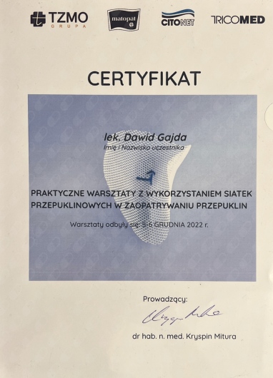 - Szkolenie specjalizacyjne i doświadczenie zdobywał w Oddziale Chirurgii Ogólnej i Onkologicznej Szpitala Miejskiego w Siemianowicach Śląskich.