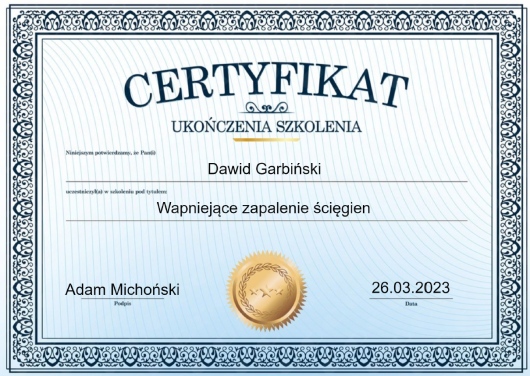 Uczestnik krajowych oraz międzynarodowych kursów, warsztatów i konferencji z zakresu ortopedii, chirurgii urazowej, medycyny sportowej/rehabilitacji oraz leczenia bólu.