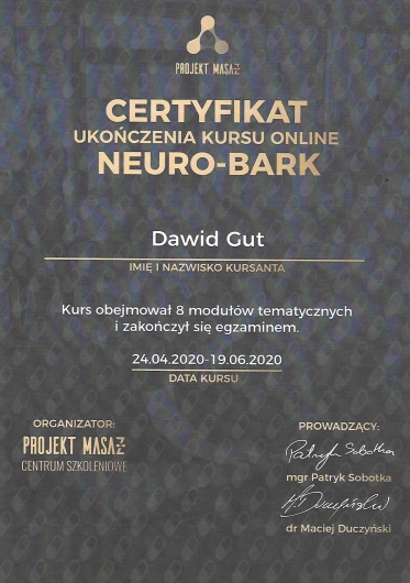 Sesje są nie tylko terapeutyczne, ale również relaksujące. Zastosowane techniki dostosowane do moich indywidualnych potrzeb, co sprawia, że poczułam się znacznie lepiej już po pierwszych zabiegach. Pan Dawid z pasją dzielił się swoją wiedzą, co dodatkowo motywowalo mnie do pracy nad sobą.
