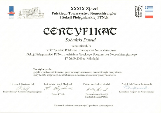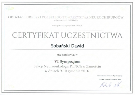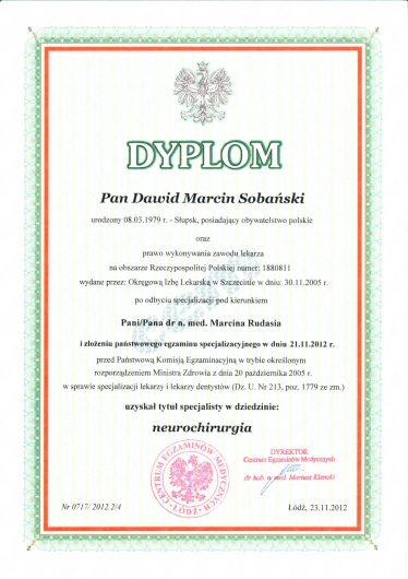 Ukończył Studia Doktoranckie i otrzymał Stopień Doktora Nauk Medycznych Uniwersytetu Medycznego w Łodzi.