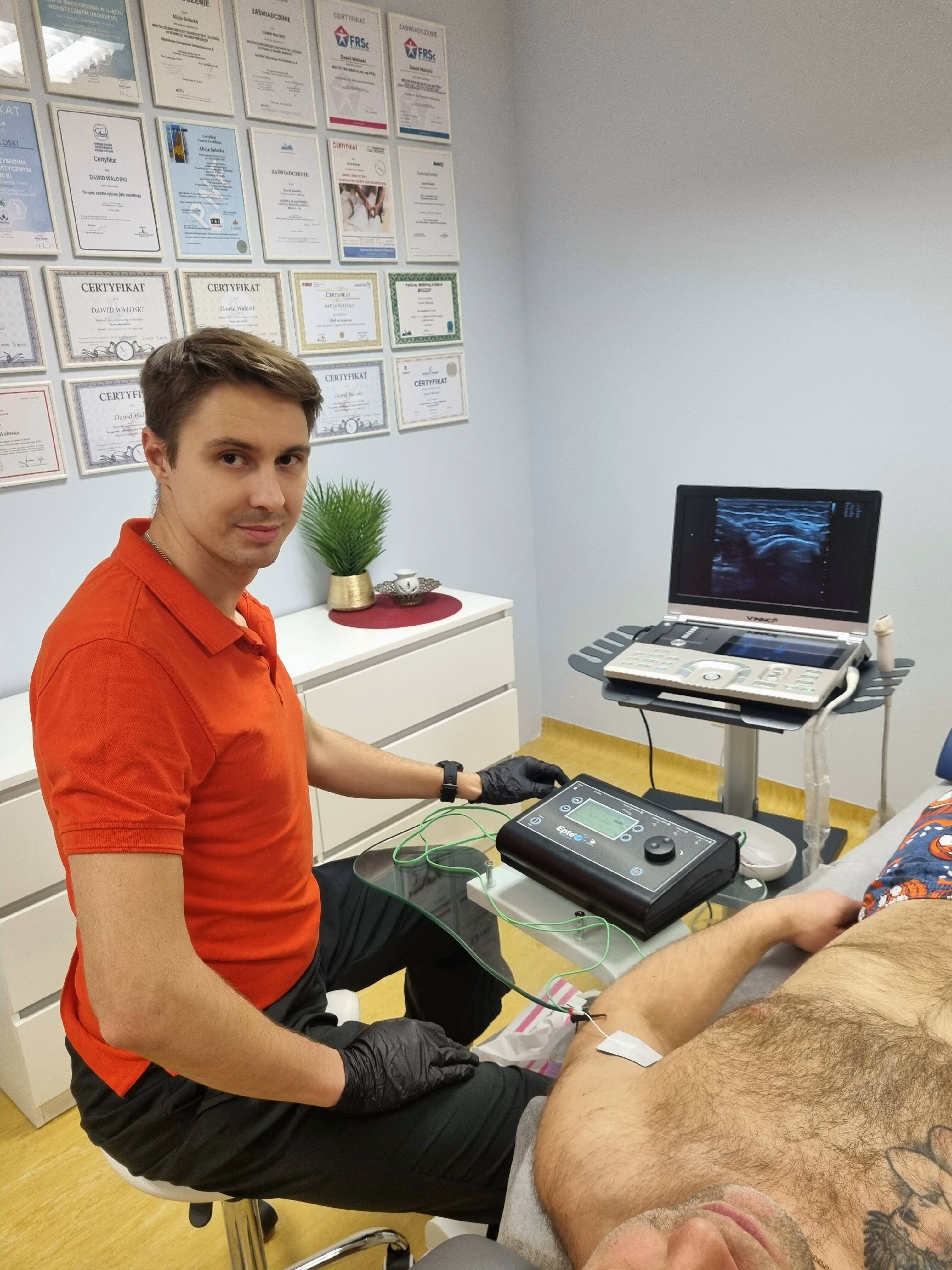 Zapraszam do badania USG stawów obwodowych wykonywanego na nowoczesnym sprzęcie Vinno6. Dzięki temu badaniu mogę z dużą pewnością stwierdzić rozległość uszkodzonej tkanki, obecność tendinopatii oraz stopień zmian zwyrodnieniowych w tkankach położonych powierzchownie. Oprócz diagnostyki sprzęt ultrasonograficzny wraz z odpowiednim urządzeniem EPTE Bipolar umożliwia również wykonanie elektrolizy EPTE oraz neuromodulacji NMP, co jest przydatne w takich schorzeniach jak: - łokieć tenisisty, - łokieć golfisty, - zwapnienia mięśnia nadgrzebieniowego, - ostroga piętowa, - kolano skoczka, - rwa kulszowa - neuropatie kończyn górnych (np. objawy cieśni nadgarstka). Badanie jest możliwe do wykonania w obu moich gabinetach.