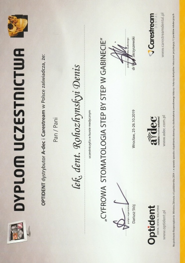 W swojej praktyce staram się nadawać szeroki specter usług - od leczenie najmniejszego ubytku próchnicowego do leczenia kanałowe zębów i uzupełnienia braków.