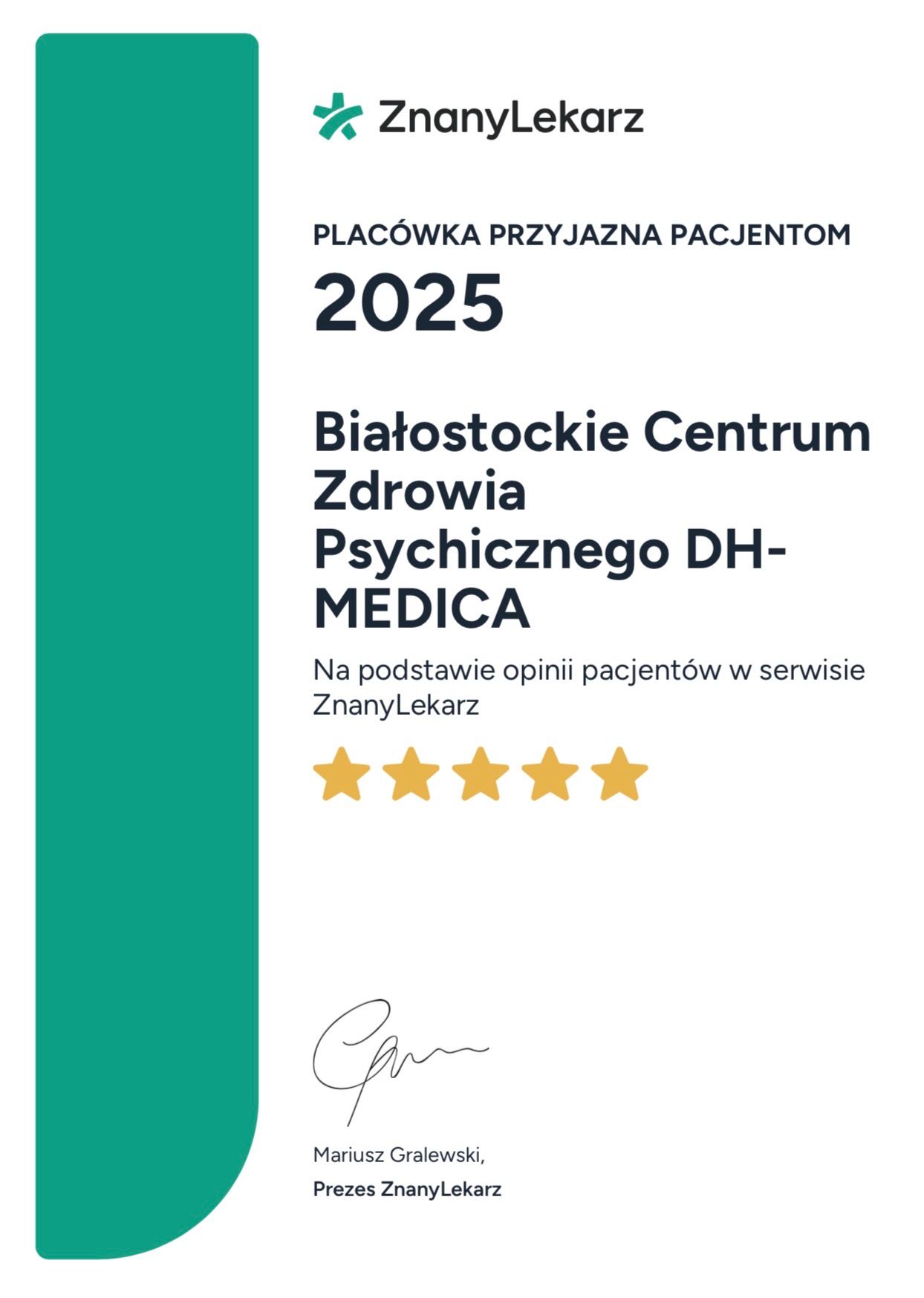 Właściciel Białostockiego Centrum Zdrowia Psychicznego DH-MEDICA Terapeuta EMDR / Terapeuta Rodziny / Terapeuta Par / Biegły Sądowy z zakresu psychologii przy Sądzie Okręgowym w Białymstoku