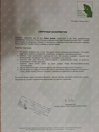 • Usługi Psychologiczne - Diana Roman, prywatny gabinet psychoterapeutyczny • Psychoterapia •
