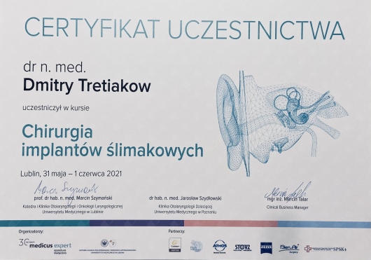 dr n. med. Dmitry Tretiakow, specjalista laryngolog przyjmuje w Poradni Laryngologicznej oraz Poradni Leczenia Chrapania w Centrum Zdrowia Lifemedica w Gdańsku.