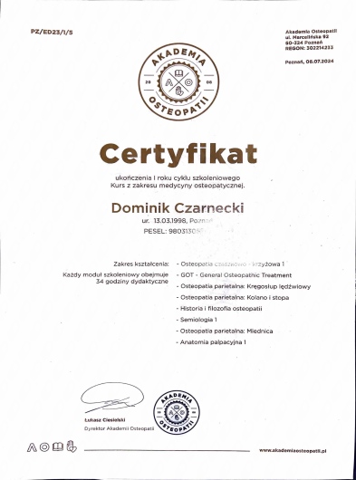 To co wyróżnia Dominika, to indywidualne podejście do pacjenta, nie skupia się jedynie na miejscu występowania bólu, ale szuka jego przyczyny w całym ciele. Do tego jest bardzo sympatyczny i każda wizyta przebiega w miłej atmosferze