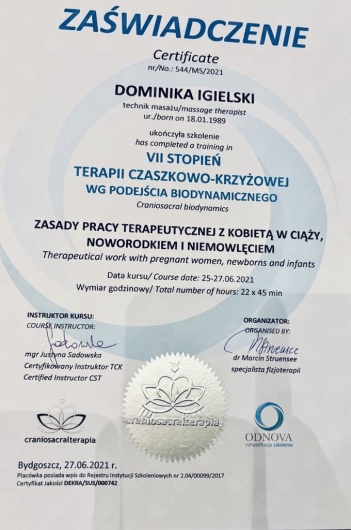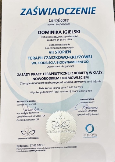 Jaki jest zakres porad oferowanych przez Dominika Igielski?Dominika Igielski to technik masażysta, logopeda. Na podstawie swojego doświadczenia i wykształcenia Dominika Igielski oferuje usługi takie jak: terapia integracji sensorycznej, Terapia czaszkowo-krzyżowa, konsultacji terapeuty integracji sensorycznej oraz diagnozy procesów integracji sensorycznej, masaż, integracja sensoryczna.