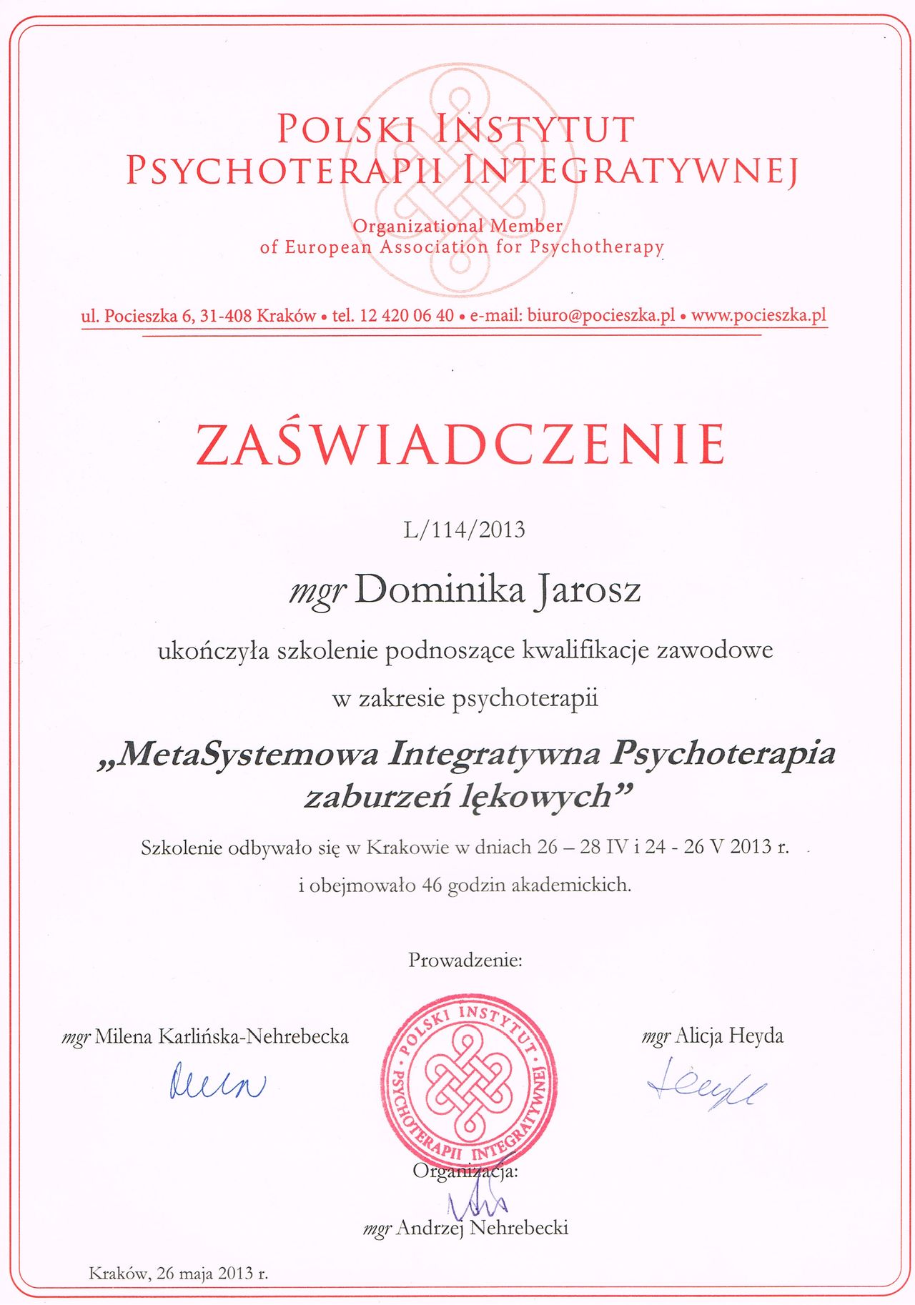 Z ręką na sercu polecam Panią psycholog!