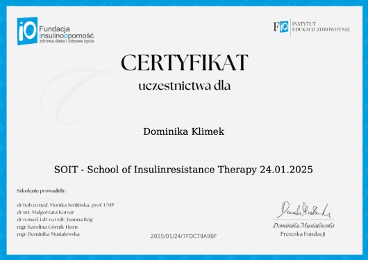 Jestem dietetykiem klinicznym specjalizującym się w chorobach metabolicznych i endokrynologicznych. Ukończyłam Śląską Wyższą Szkołę Medyczną w Katowicach. Doświadczenie zawodowe zdobywałam pracując w poradniach dietetycznych, gdzie pracowałam z osobami z różnymi chorobami. Moim celem jest edukacja pacjentów, co ułatwia wprowadzanie nowych nawyków żywieniowych. Oferuję spersonalizowane plany żywieniowe oraz zalecenia dostosowane do indywidualnych potrzeb. Podejmuję współpracę zarówno z osobami zdrowymi pragnącymi zredukować nadmierną masę ciała, jak i z pacjentami z różnymi jednostkami chorobowymi wymienionymi poniżej.
