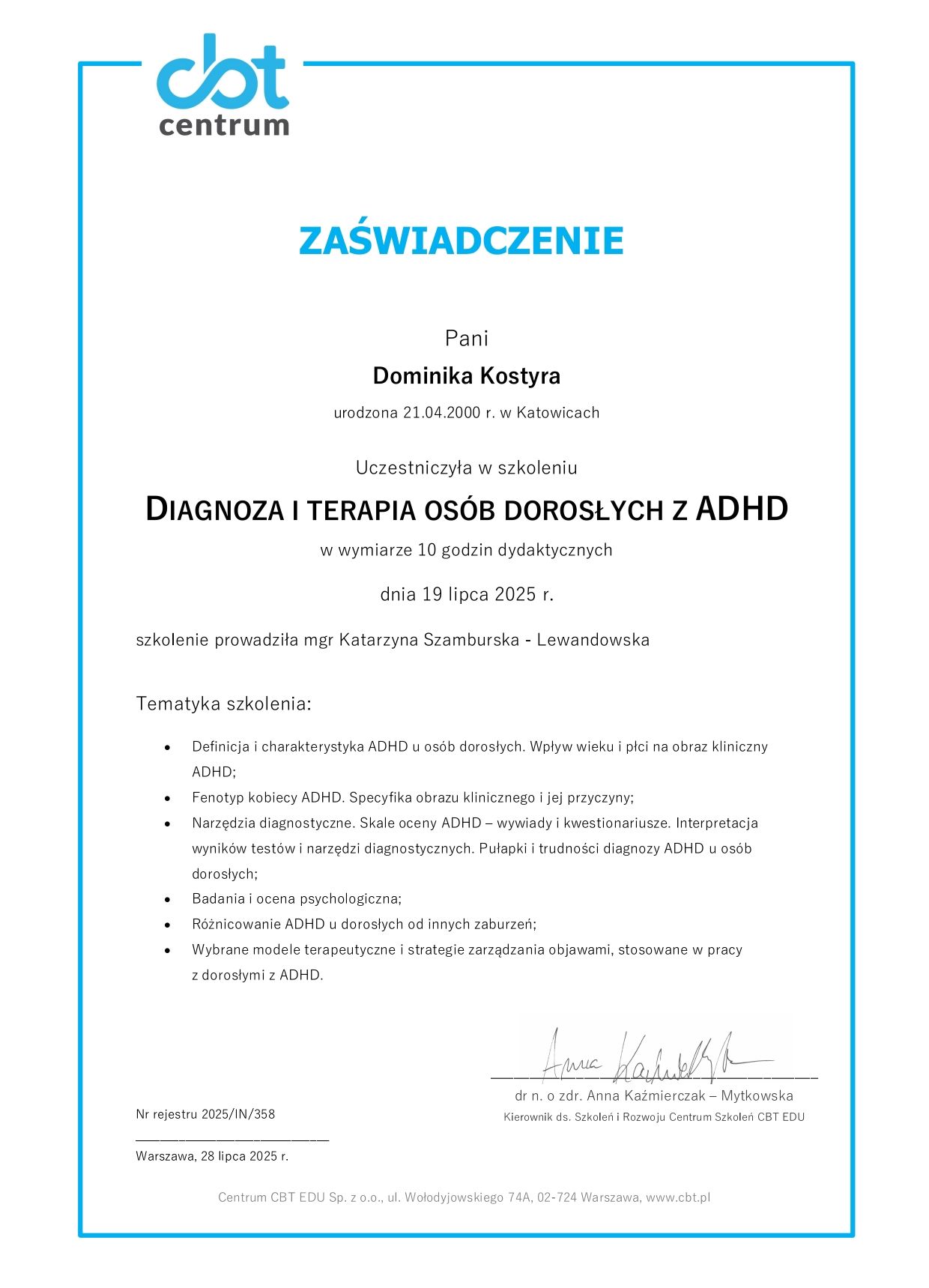 mgr Dominika Kostyra