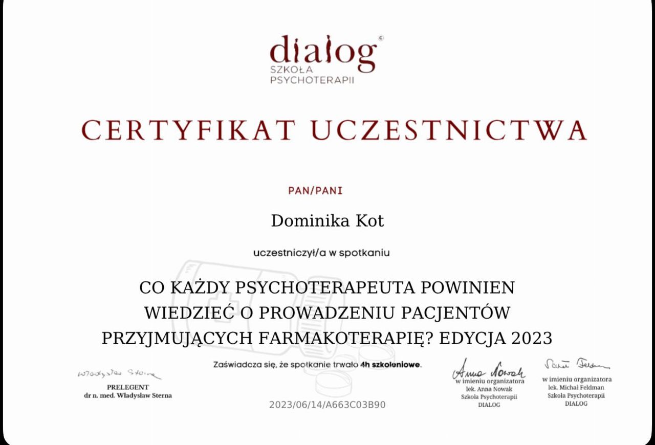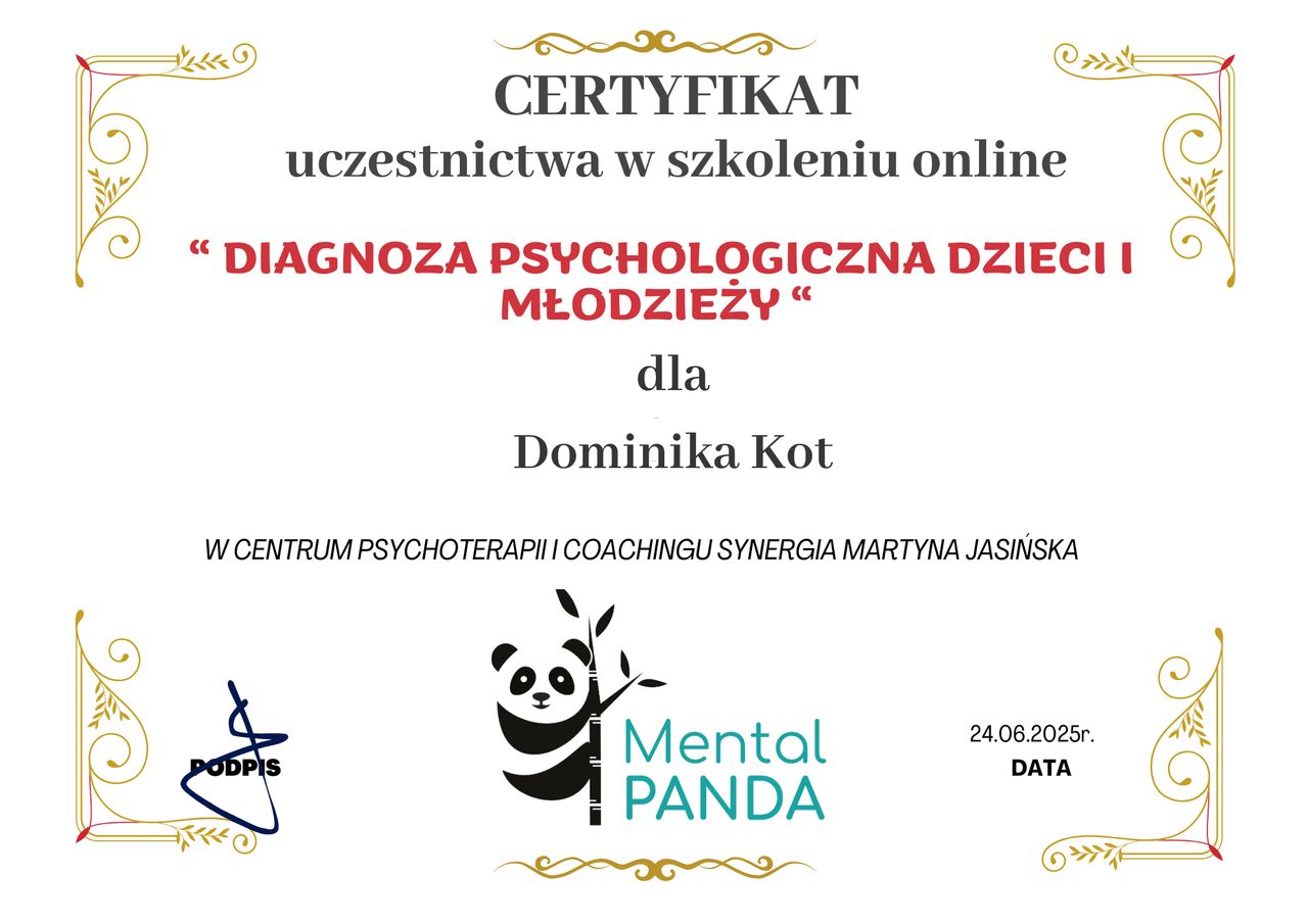 Czy Dominika Kot przyjmuje online, bez konieczności pojawiania się w placówce?Tak, Dominika Kot oferuje konsultacje online. Wybierz opcję „konsultacja online” przy umawianiu wizyty, a zobaczysz dostępne terminy.