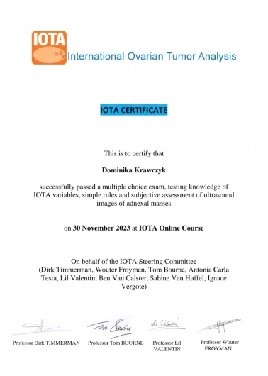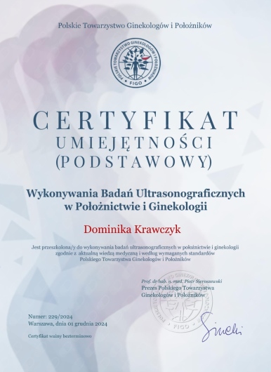 - USG w kierunku diagnostyki wad wrodzonych (USG „połówkowe” 18 – 22(+6) t.c.)