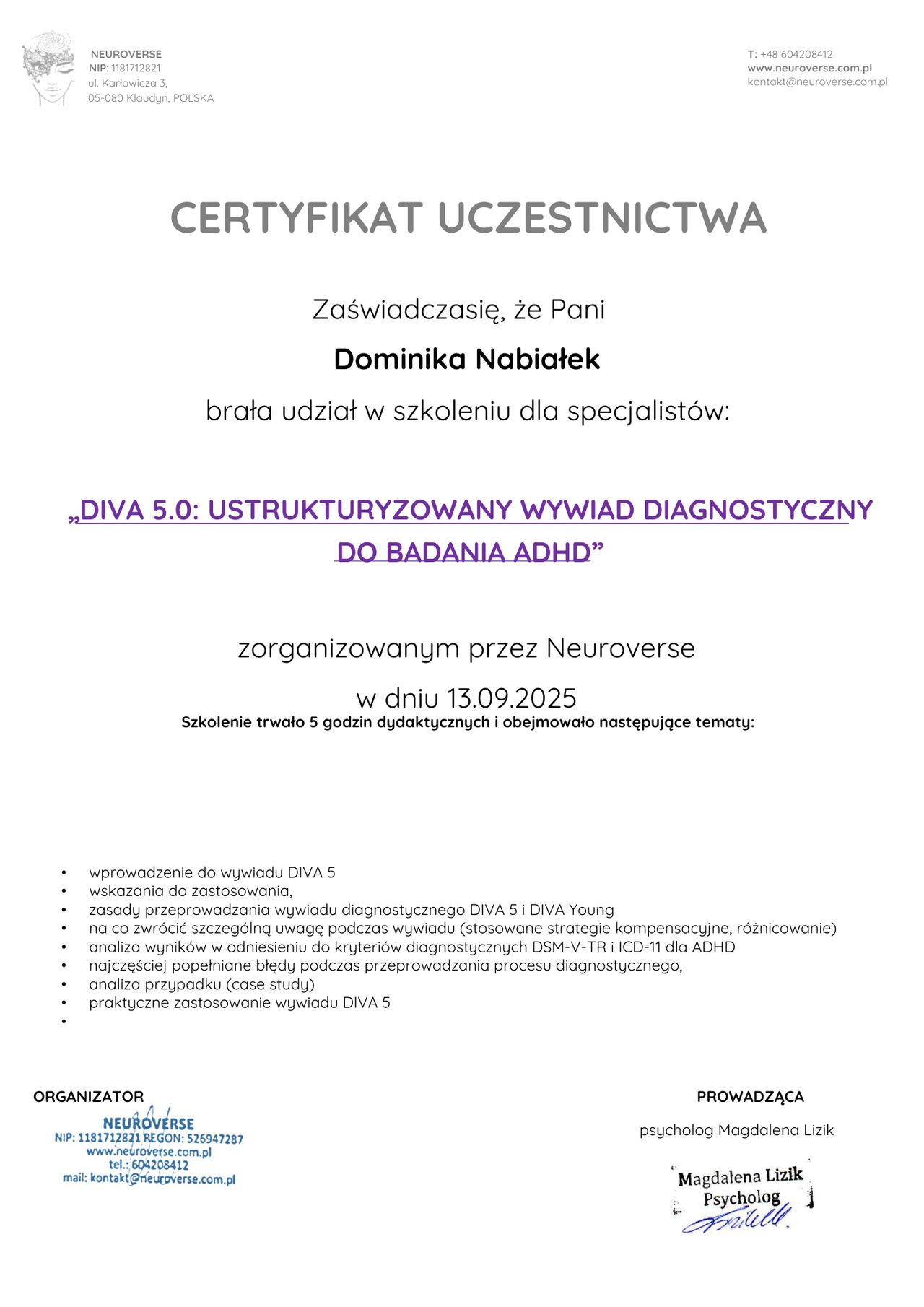 mgr Dominika Nabiałek
