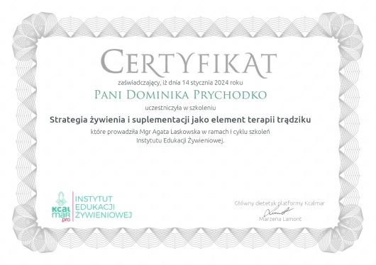 Czy Dominika Prychodko przyjmuje online, bez konieczności pojawiania się w placówce?Tak, Dominika Prychodko oferuje konsultacje online. Wybierz opcję „konsultacja online” przy umawianiu wizyty, a zobaczysz dostępne terminy.