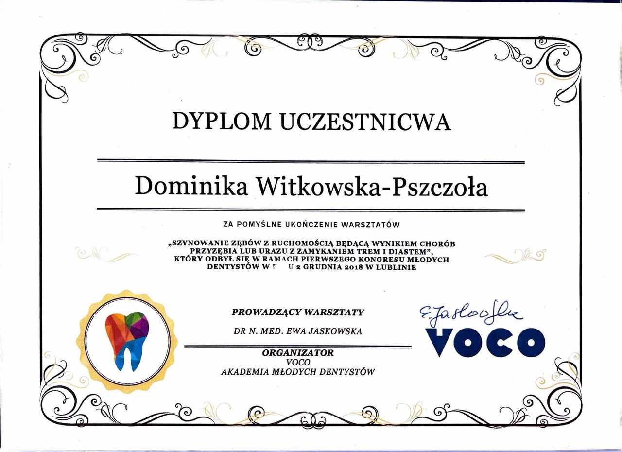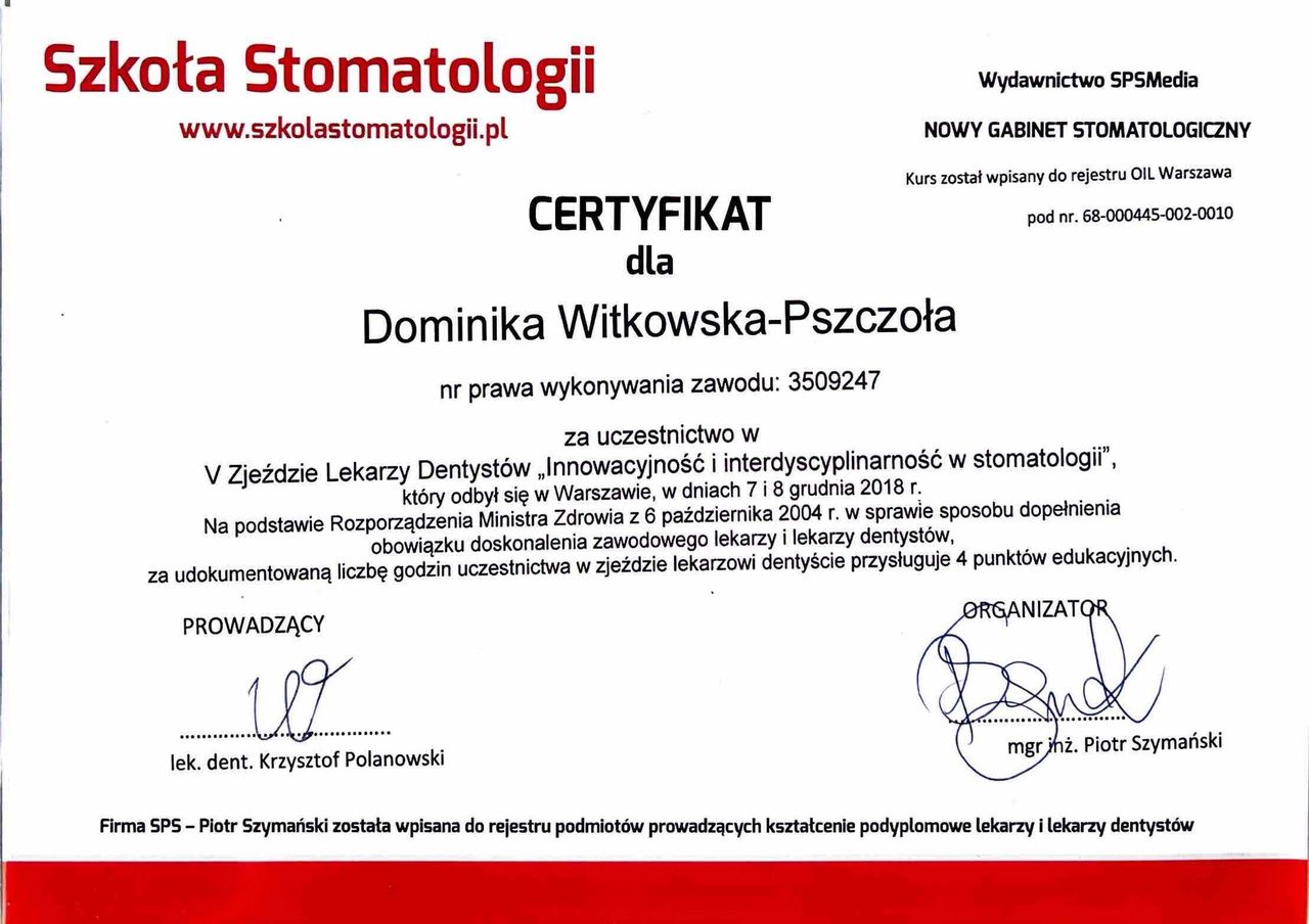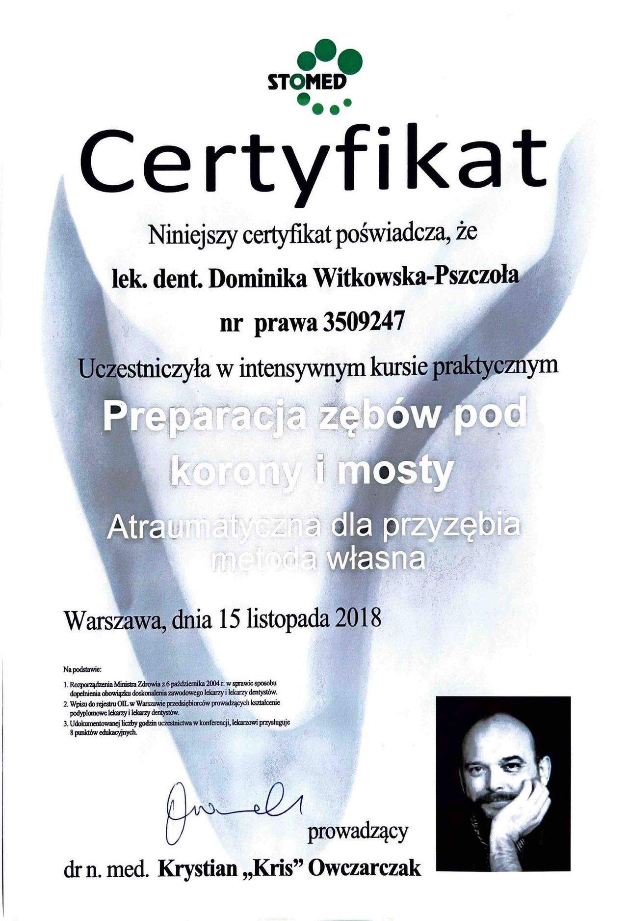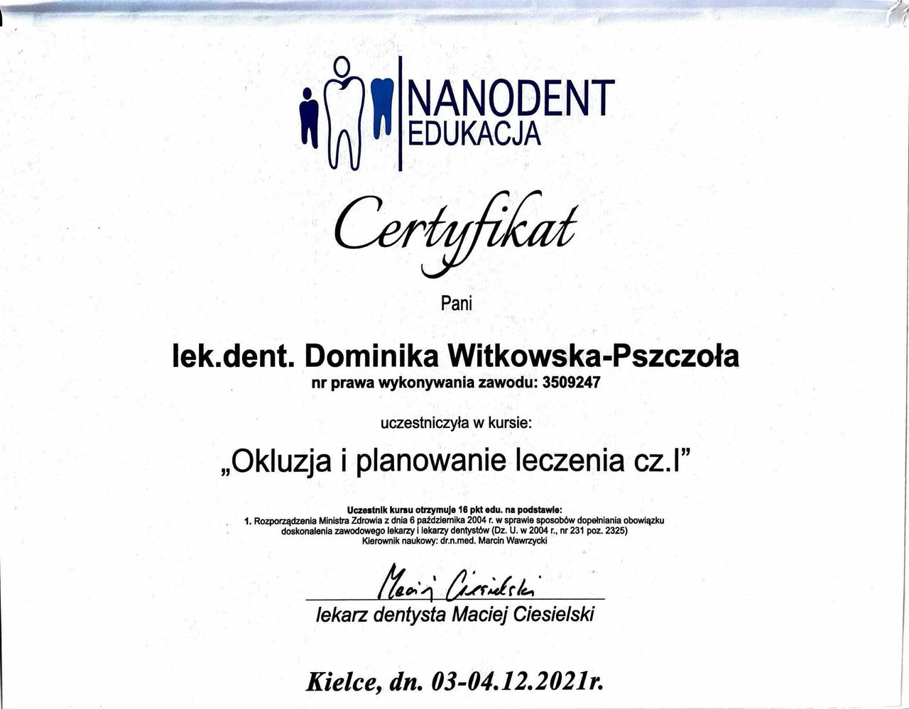 Pani Dominika Witkowska-Pszczoła to dentystka z prawdziwym powołaniem! Profesjonalna, delikatna i pełna empatii – dzięki niej każda wizyta przebiega w spokojnej i przyjaznej atmosferze. Miałem wykonywane leczenie kanałowe i byłem mile zaskoczony, jak wszystko bezboleśnie i sprawnie przebiegło. Pani doktor dokładnie tłumaczy każdy etap zabiegu, co daje ogromne poczucie bezpieczeństwa i komfortu. Zdecydowanie polecam każdemu, kto szuka dobrego dentysty i chce zadbać o swój uśmiech w komfortowych warunkach.