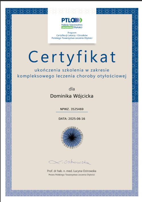 Czy Dominika Wójcicka przyjmuje online, bez konieczności pojawiania się w placówce?Tak, Dominika Wójcicka oferuje konsultacje online. Wybierz opcję „konsultacja online” przy umawianiu wizyty, a zobaczysz dostępne terminy.