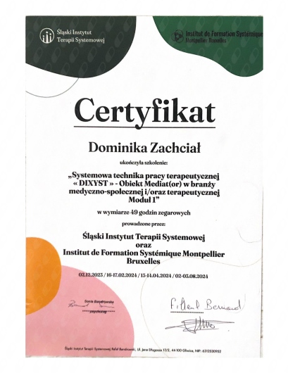 Czy Dominika Zachciał przyjmuje online, bez konieczności pojawiania się w placówce?Tak, Dominika Zachciał oferuje konsultacje online. Wybierz opcję „konsultacja online” przy umawianiu wizyty, a zobaczysz dostępne terminy.