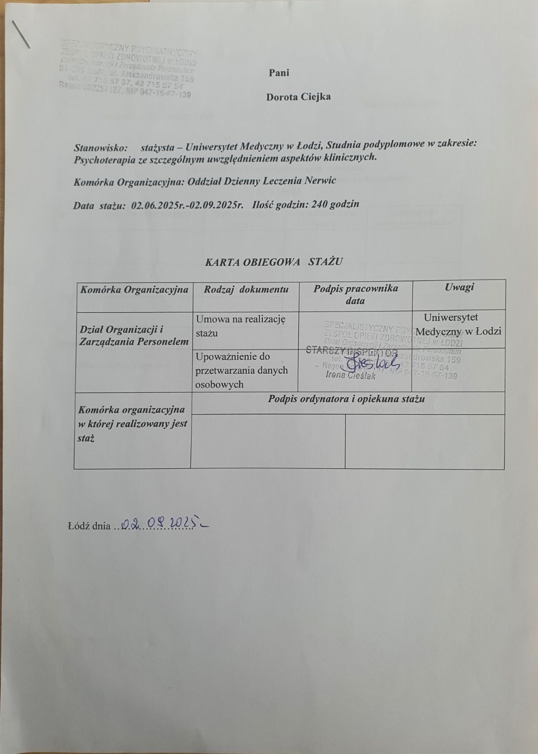 Pracuję w Poradni Zdrowia Psychicznego w Szpitalu im. J. Babińskiego w Łodzi