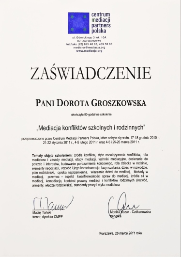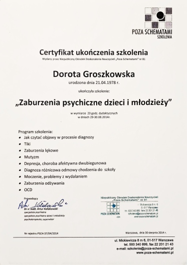 Wyniki, przeprowadzonej przeze mnie diagnozy są respektowane przez szkoły oraz poradnie psychologiczno – pedagogiczne. Wydawane przez nas informacje o wynikach badań mogą zdecydowanie przyspieszyć proces uzyskiwania opinii lub orzeczeń w poradniach psychologiczno – pedagogicznych.