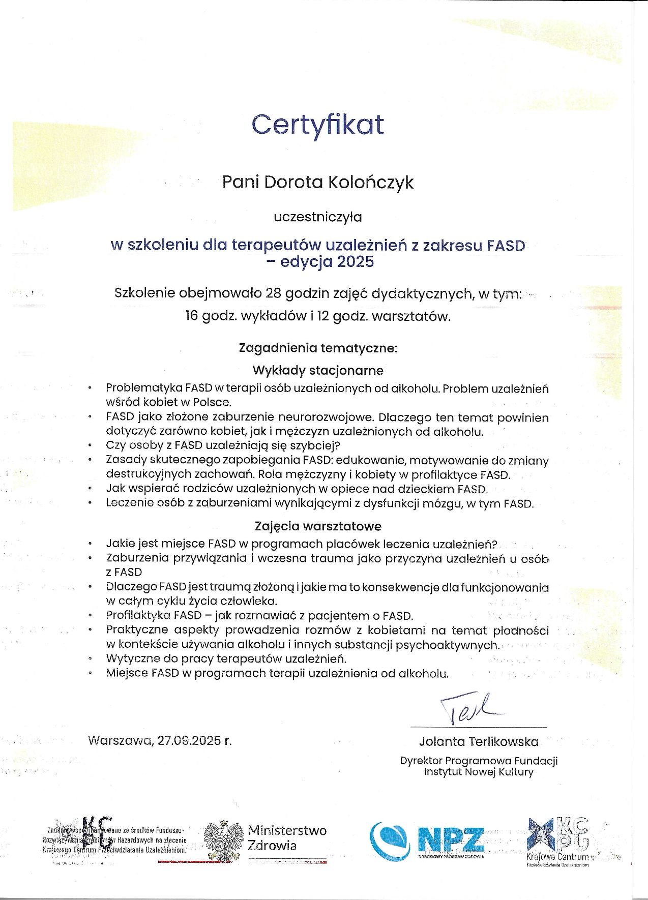 Wierzę, że to dopiero początek naszej wspólnej drogi, ale po pierwszym spotkaniu już czuję się podbudowana i zaczynam wierzyć, że poradzę sobie w końcu ze swoimi trudnościami.