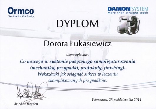 Do Pani doktor wybrałam się po wizytach u dwóch innych ortodontów, którzy kompletnie nie wzbudzili mojego zaufania, proponowali dziwne rozwiązania (każdy inne), albo wydawali sądy "na oko". Miałam też wrażenie, że mnie w ogóle nie słuchali. W gabinecie dr Łukasiewicz wszystko było inaczej. Pani doktor wszystko wyjaśniała, wzięła pod uwagę to, co mówiłam o sobie i o swoich potrzebach. Dostałam plan leczenia spersonalizowany, doskonale skrojony pode mnie. Na wizytach wyjaśniane mi były szczegółowo wszystkie kroki, brane były pod uwagę moje wątpliwości i moje potrzeby. Leczenie trwało też krócej niż zakładano, efekty są dużo lepsze niż się spodziewałam! Wszystko przebiegło gładko, nigdy nie miałam wątpliwości co do Pani doktor i nigdy nie pojawiło się we mnie żadne zwątpienie dotyczące leczenia. Dodatkowo Pani doktor jest niezwykle ciepłą osobą i w gabinecie panuje przyjemna atmosfera. Polecam bardzo Panią doktor Łukasiewicz!