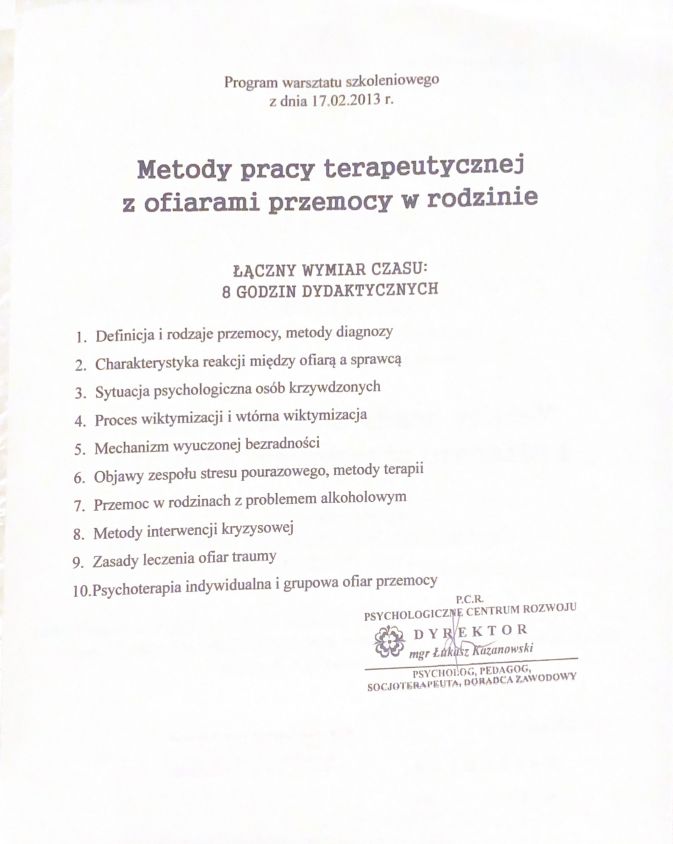 Jestem psychologiem z ponad dziesięcioletnim doświadczeniem, w trakcie 4-letniego szkolenia z psychoterapii w Szkole Psychoterapii Poznawczo - Behawioralnej "Instytut Poznawczy". Terapeutycznie pracuję w nurcie poznawczo - behawioralnym i jestem Członkiem Polskiego Towarzystwa Terapii Poznawczej i Behawioralnej.