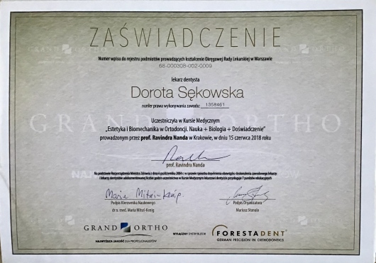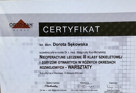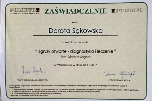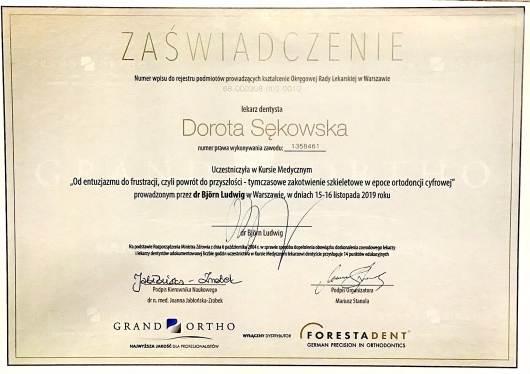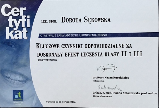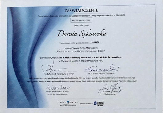 Doktor Dorotka Sękowska jest ortodontą - profesjonalistą na najwyższym poziomie.
