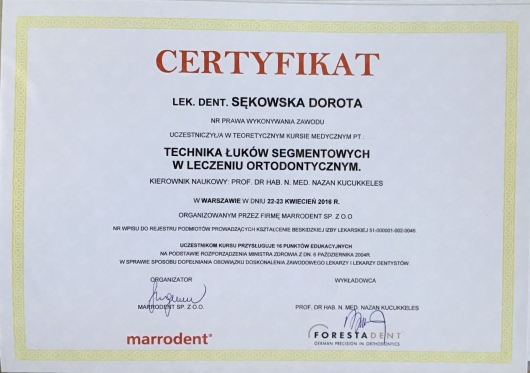 Właśnie zakończyłem leczenie ortodontyczne u dr Sękowskiej i jestem bardzo zadowolony z uzyskanych efektów. Całość leczenia została szczegółowo i profesjonalnie zaplanowana z uwzględnieniem najnowszych osiągnięć w dziedzinie ortodoncji. Co ważne leczenie poprzedzone było pełną i dokładną diagnostyką. Wszystkie wizyty były z góry wcześniej rozplanowane, odbywały się punktualnie i w bardzo przyjaznej atmosferze. Pani doktor dokładnie wszystko wyjaśnia, a co ważniejsze pozostaje w stałym kontakcie z pacjentami i rozwiązuje wszystkie problemy na bierząco, jeżeli takowe się pojawiają. Dzięki umiejętnościom i doświadczeniu Pani Doktor w trakcie noszenia aparatu nie odczuwałem właściwie żadnych dolegliwości i 2,5 roku leczenia minęło bardzo szybko. Efekty końcowe w 100% odpowiadają moim oczekiwaniom, o których rozmawiałem z Panią Doktor na pierwszych wizytach. Bardzo dziękuje za Pani pomoc i zaangażowanie w moje leczenie.