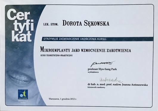 Z całego serca polecam dr Dorotę Sękowską. Właśnie zakończyłam leczenie bardzo trudnej i wymagającej wady, z którą niewielu ortodontów poradziłoby sobie tak doskonale. Pani doktor dokonała podwójnego cudu – z mojego krzywego uśmiechu zrobiła hollywoodzkie cudo a dzięki jej wyjątkowemu podejściu do pacjenta, pełnego życzliwości, cierpliwości i humoru przestałam bać się gabinetów stomatologicznych. Pomimo radości z zakończonego leczenia będę tęsknić za wizytami u Pani doktor.
