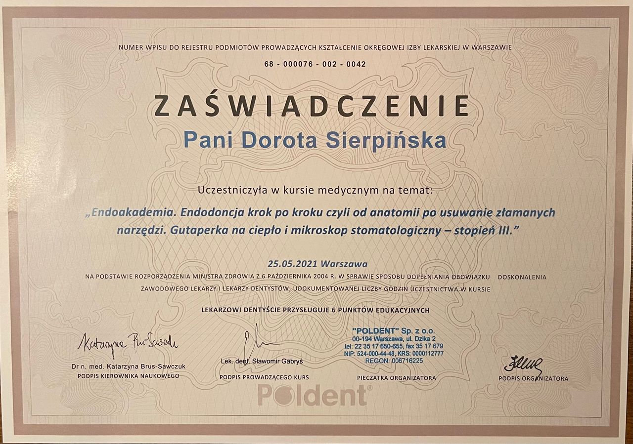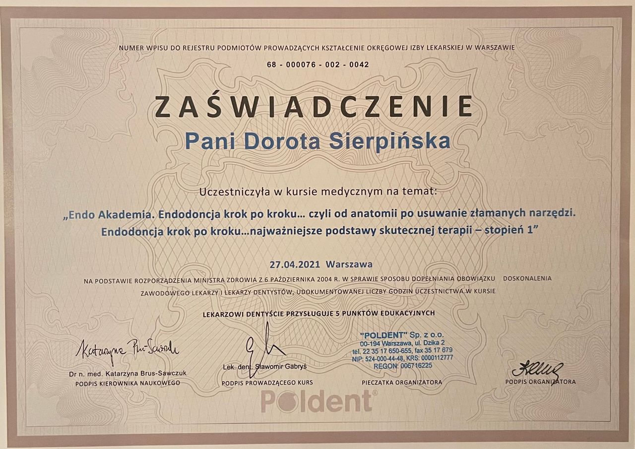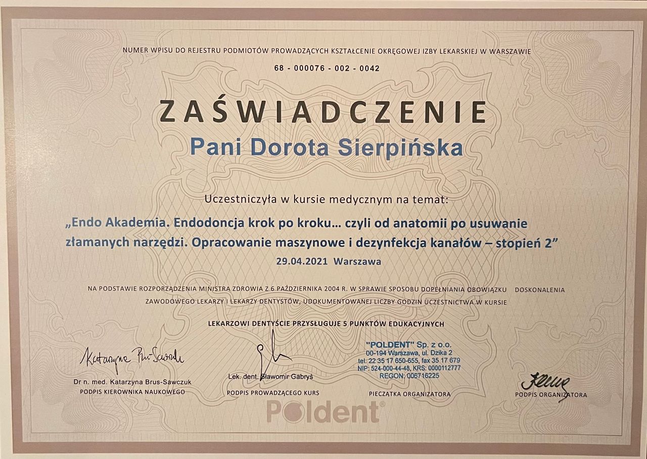 Pani doktor Sierpińska dba o zęby mojego syna od 4 lat. Jest lekarką niezwykle empatyczną, co z punktu widzenia małego pacjenta jest sprawą chyba najważniejszą. Dokładnie tłumaczy co po kolei będzie się działo, nie pomijając tego, że coś może zaboleć albo być nieprzyjemne. Dzięki temu nie ma zaskoczeń, a dzieci przestają bać się dentysty.