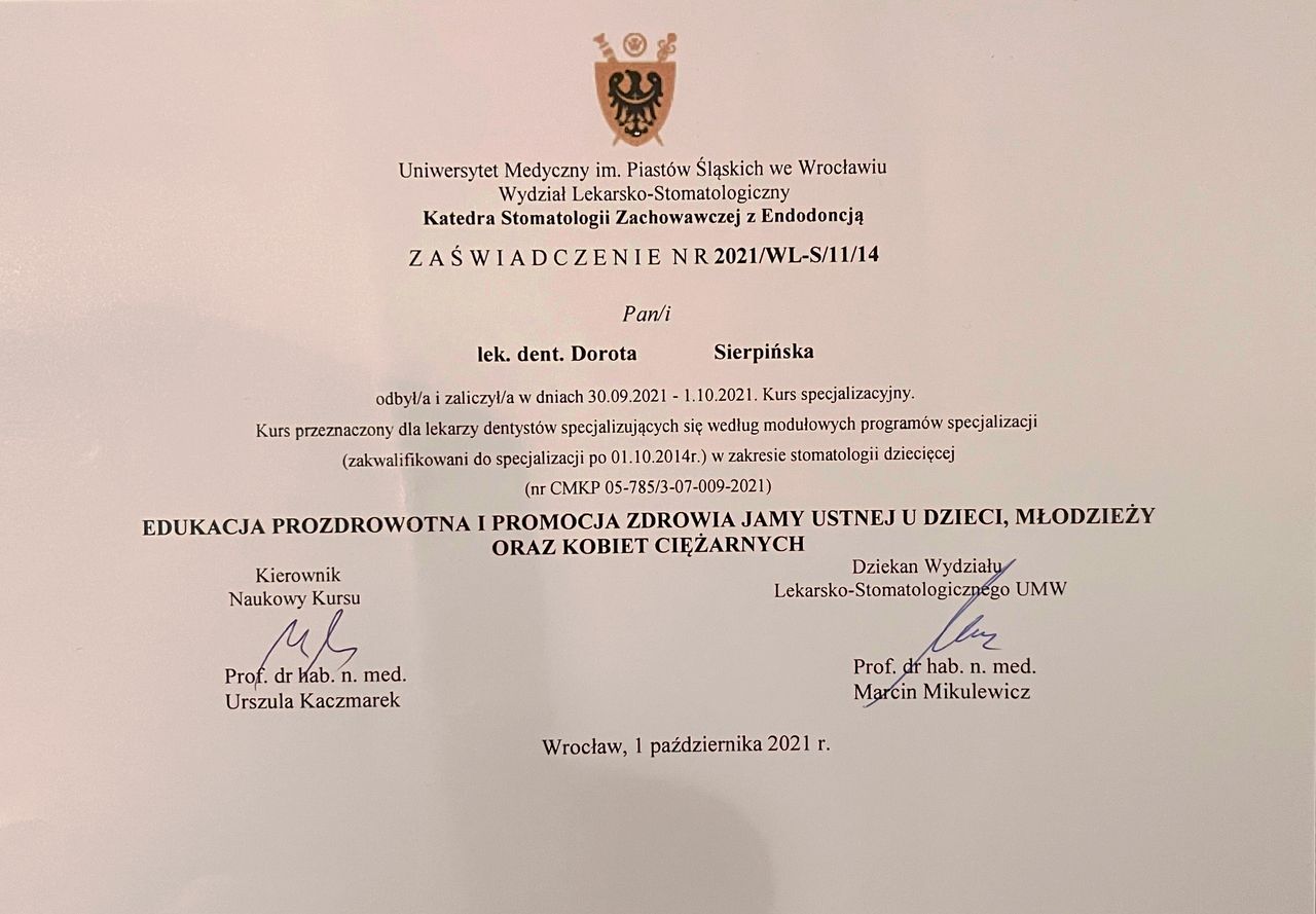 Specjalistka Stomatologii Dziecięcej.