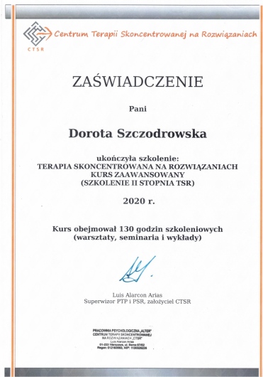 Jaki jest zakres porad oferowanych przez Dorota Szczodrowska?Dorota Szczodrowska to psycholog, psychoterapeuta certyfikowany, biegły sądowy. Na podstawie swojego doświadczenia i wykształcenia Dorota Szczodrowska oferuje usługi takie jak: Konsultacja psychologiczna, psychoterapia indywidualna, psychoterapia uzależnień, terapia par, psychoterapia współuzależnienia, diagnoza ADHD dla dorosłych, konsultacja biegłego sądowego, konsultacja psychoterapeutyczna (pierwsza wizyta).