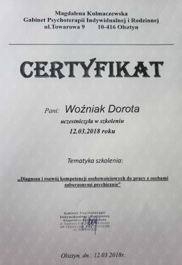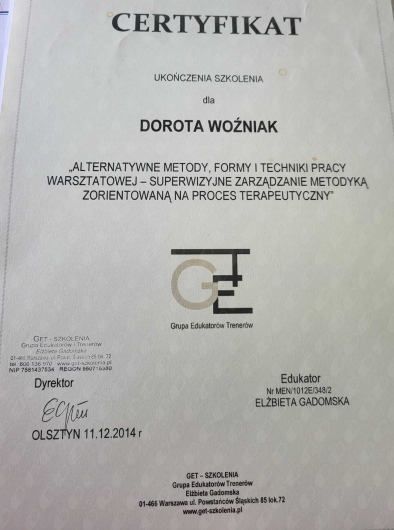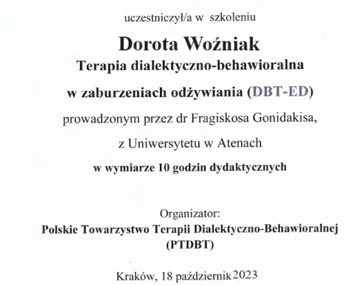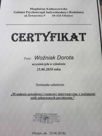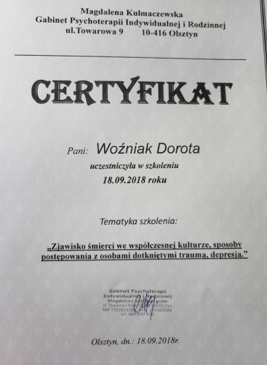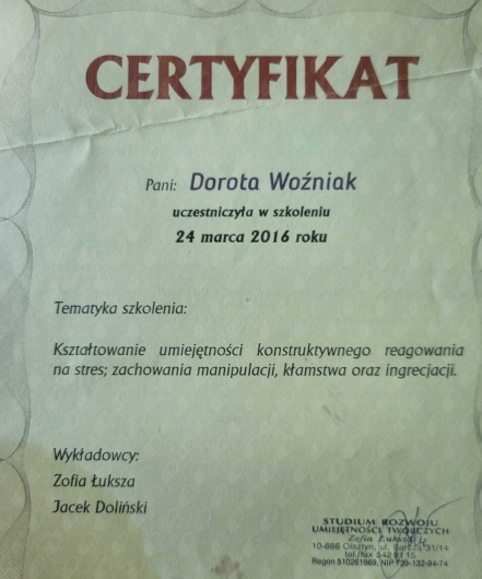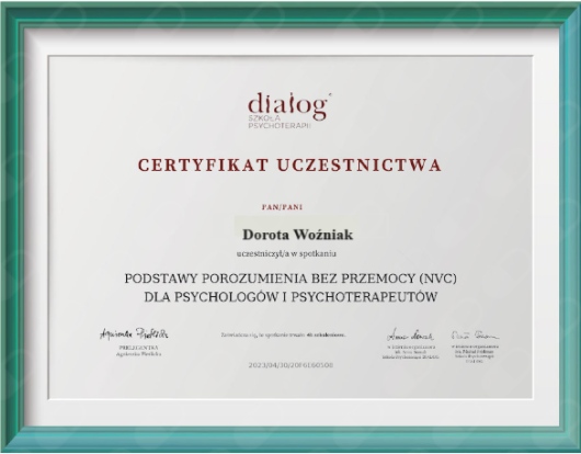 Od wielu lat biorę udział w licznych szkoleniach, warsztatach i konferencjach, codziennie szukam nowych inspiracji z dziedziny psychologii i neuronauk, gdyż psychologia i neurobiologia to moja pasja.