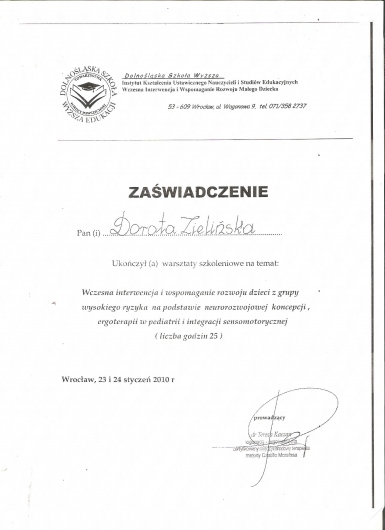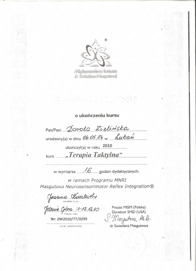 Nie polecam do terapii niemowlaka. Pani Dorota zdiagnozowała obniżone napięcie mięśnia okrężnego ust i zaleciła nam terapię na 2-3 spotkaniach z nią, na których miały być wykonywane masaże buzi oraz wymianę wszystkich smoczków i smoczków w butelkach na anatomiczne. Mieliśmy problem z zakupem takiej butelki, co dało nam do myślenia i postanowiliśmy skonsultować te zalecenia z innym specjalistą, który jednoznacznie stwierdził, że są bezpodstawne, ponieważ dziecko ma nie obniżone, ale zwiększone napięcie (co zgadza się z diagnozami stawianymi przez neurologa, osteopatę i fizjoterapeutę). Smoczki, które Pani Dorota zaleciła nam kupić są w tym wypadku niepotrzebne, a wręcz mogą być szkodliwe. Być może w terapii starszego dziecka Pani Dorota się sprawdza i stąd dobre opinie. Na plus podejście do dziecka i warunki w gabinecie oraz lokalizacja.