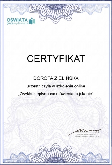 Terapia przynosi już pewnie efekty, moja płynność mowy się polepszyła. Niestety dalej występują u mnie zacięcia, głównie na samogłoskach. Nic nie przychodzi od razu i potrzeba czasu na to, nieraz brakuje cierpliwości ale wtedy Pani Dorota gasi skutecznie pożary Polecam!