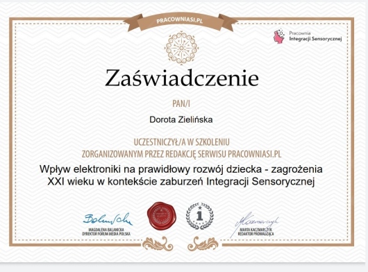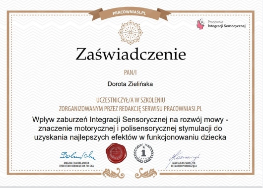 Pani Dorota z dużym zaangażowaniem i serdecznością podeszła do problemu korekcji wymowy z jakim się do niej zwróciliśmy. W trakcie terapii otrzymaliśmy wiele wskazówek i pomysłów na ćwiczenia w domu a przy każdym spotkaniu pojawiały się nowe ciekawe zabawy wspomagające do ćwiczeń. Trudności z wymową niektórych głosek udało się skutecznie przezwyciężyć i wskazać prawidłowe wzorce na przyszłość. Serdecznie dziękujemy!